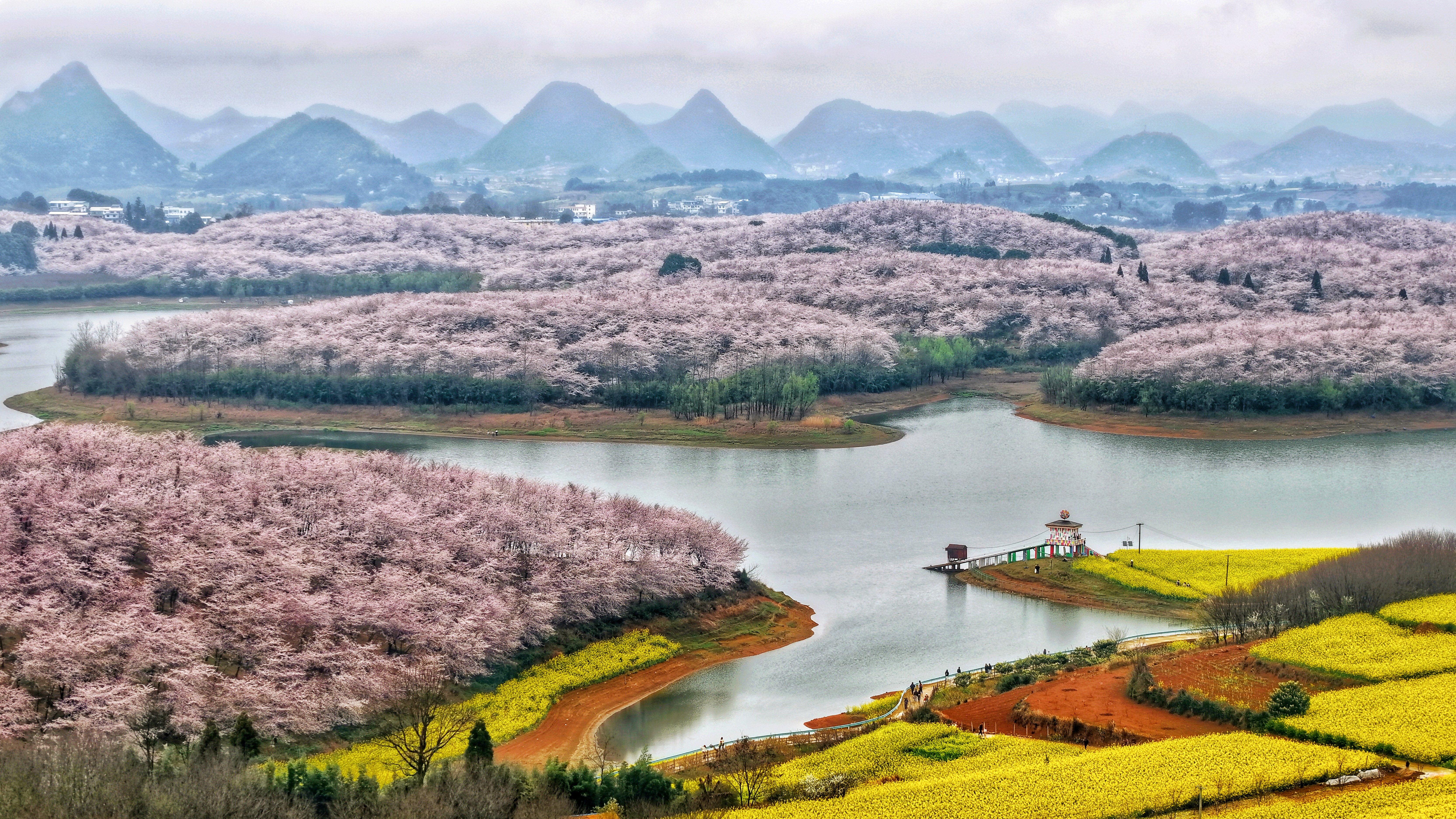 眼下,贵安樱花园正处于一年中最动人的盛花期,2.4万余亩、70万余株樱花缀满枝头,绵延成无边无际的粉色云海,与碧波荡漾的红枫湖交相辉映,一步一景皆成诗画,成为“爽爽贵阳·山水贵安·花漾高峰”春日里最耀眼的文旅地标,吸引着八方游客前来打卡赏樱。